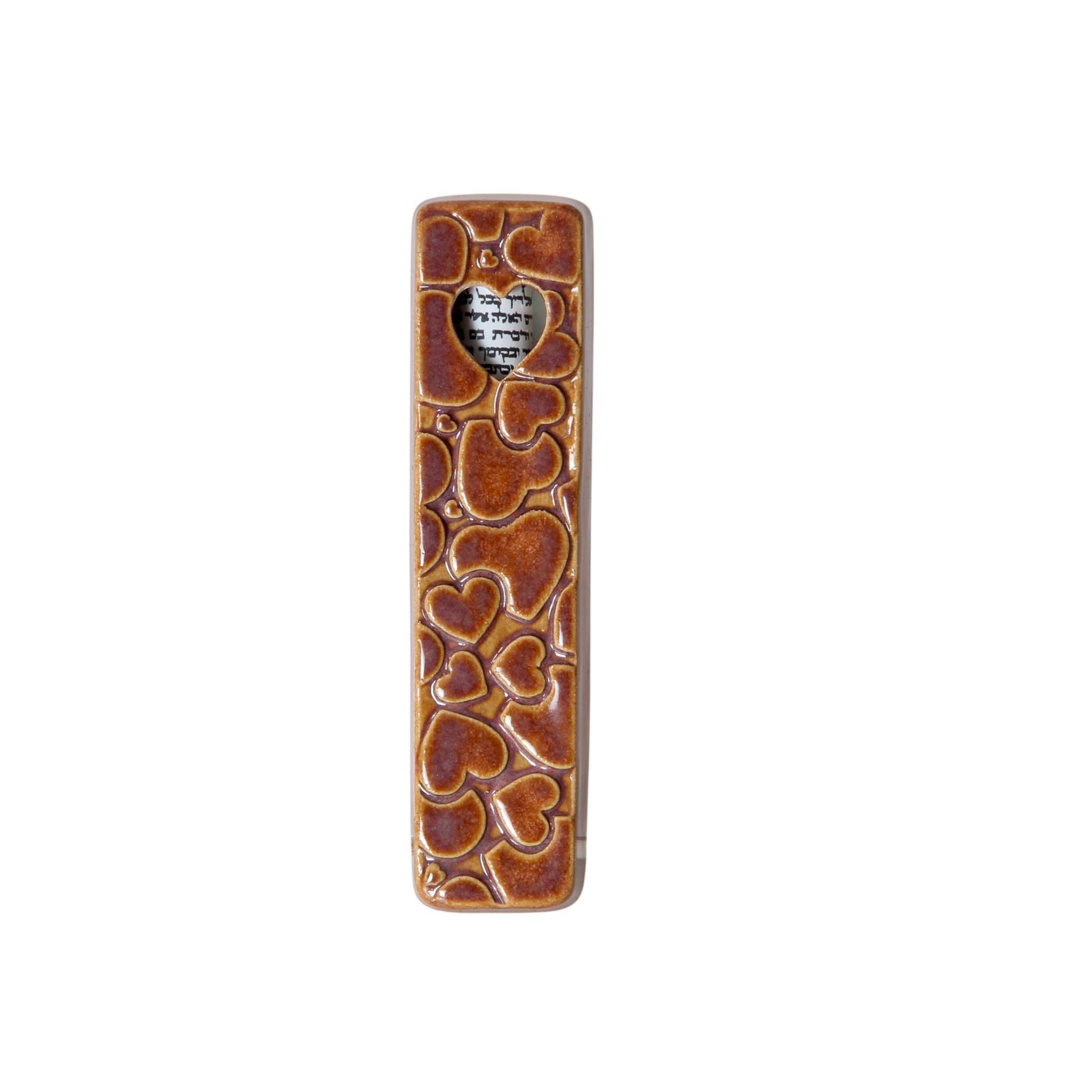 Ručně vyrobená keramická mezuza s motivem srdcí. Jedinečný ručně vyrobený kus pro milovníky židovské tradice a kultury. Mezuza obsahuje kopii svitku. Košer svitek si můžete zakoupit samostatně na našich webových stránkách.