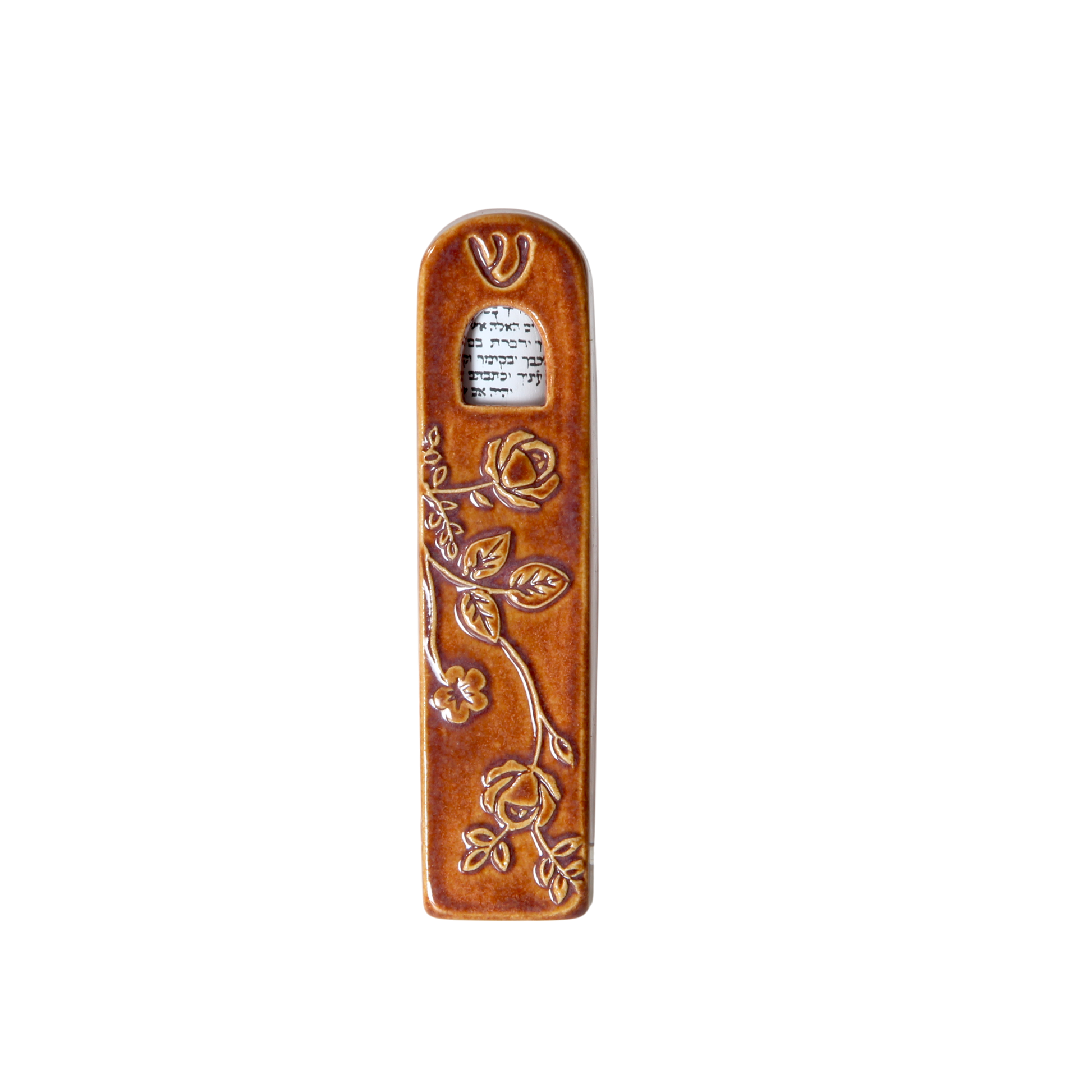 Ručně vyrobená keramická mezuza s motivem růží. Jedinečný ručně vyrobený kus pro milovníky židovské tradice a kultury. Mezuza obsahuje kopii svitku. Košer svitek si můžete zakoupit samostatně na našich webových stránkách.