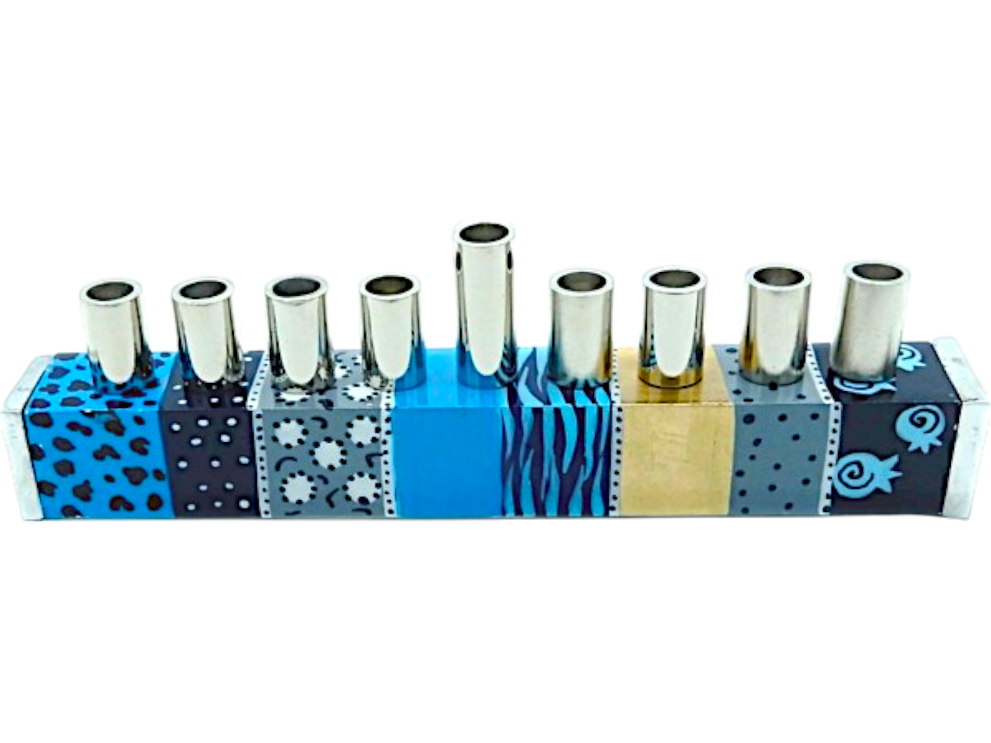 Pokud hledáte chanukový svícen moderního designu, který je veselý a barevný, ale zároveň elegantní, určitě vás nadchne tato plochá chanukie s devíti větvemi.