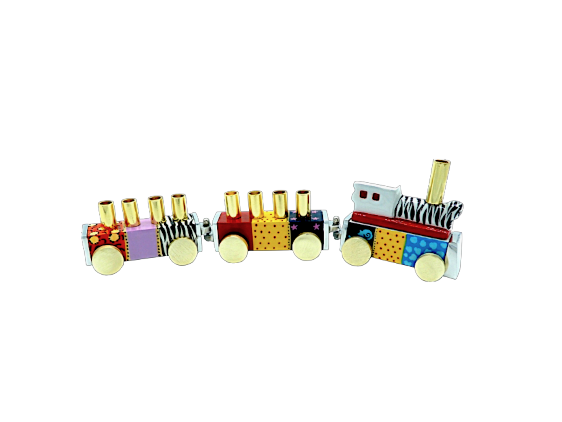 Pokud hledáte chanukový svícen moderního designu, který je veselý a barevný, ale zároveň elegantní, určitě vás nadchne tato plochá chanukie s devíti větvemi. Menora je navržena jako model vláčku a může být ideálním dárkem pro děti.