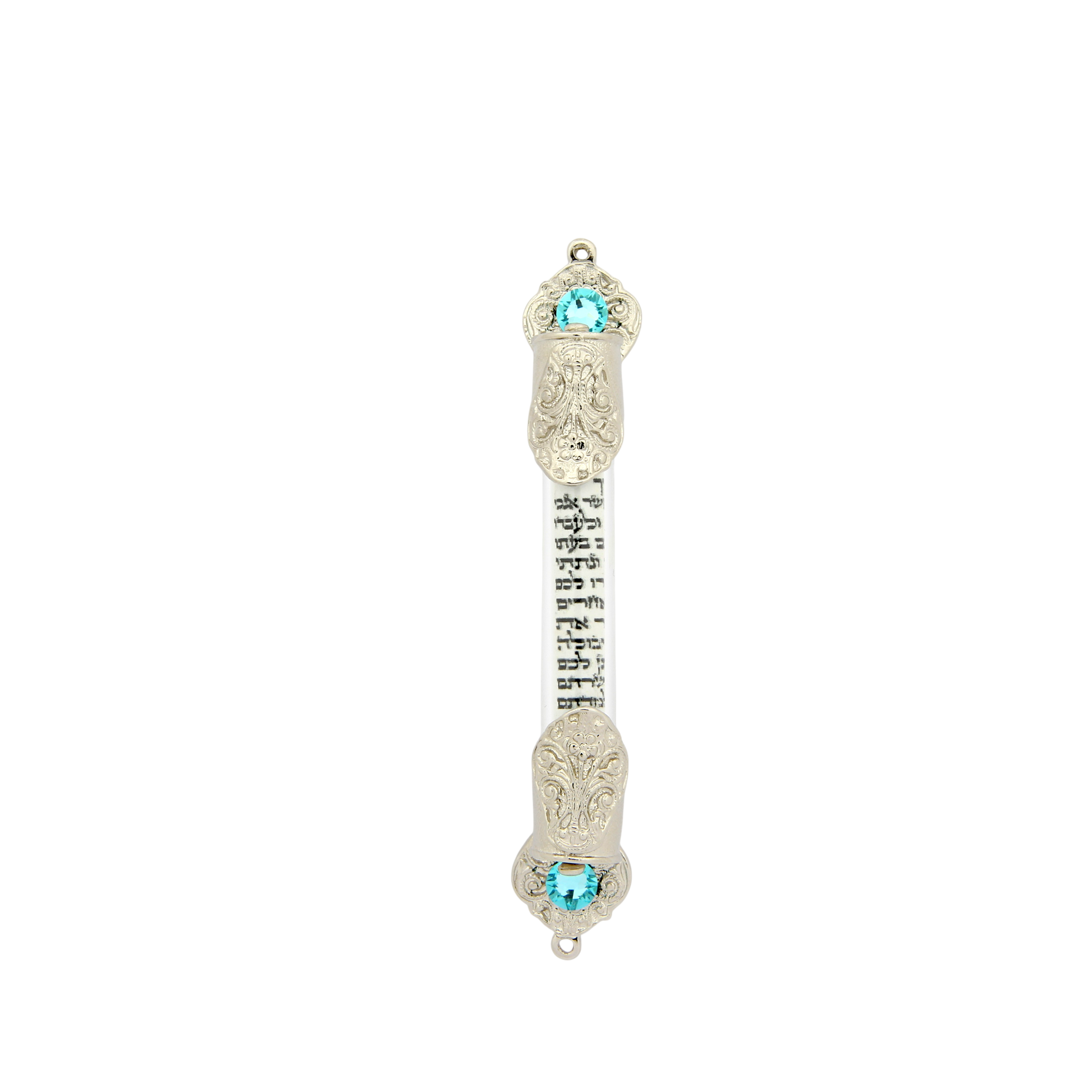 Křišťálová Mezuza - Postříbřená - Akvamarín