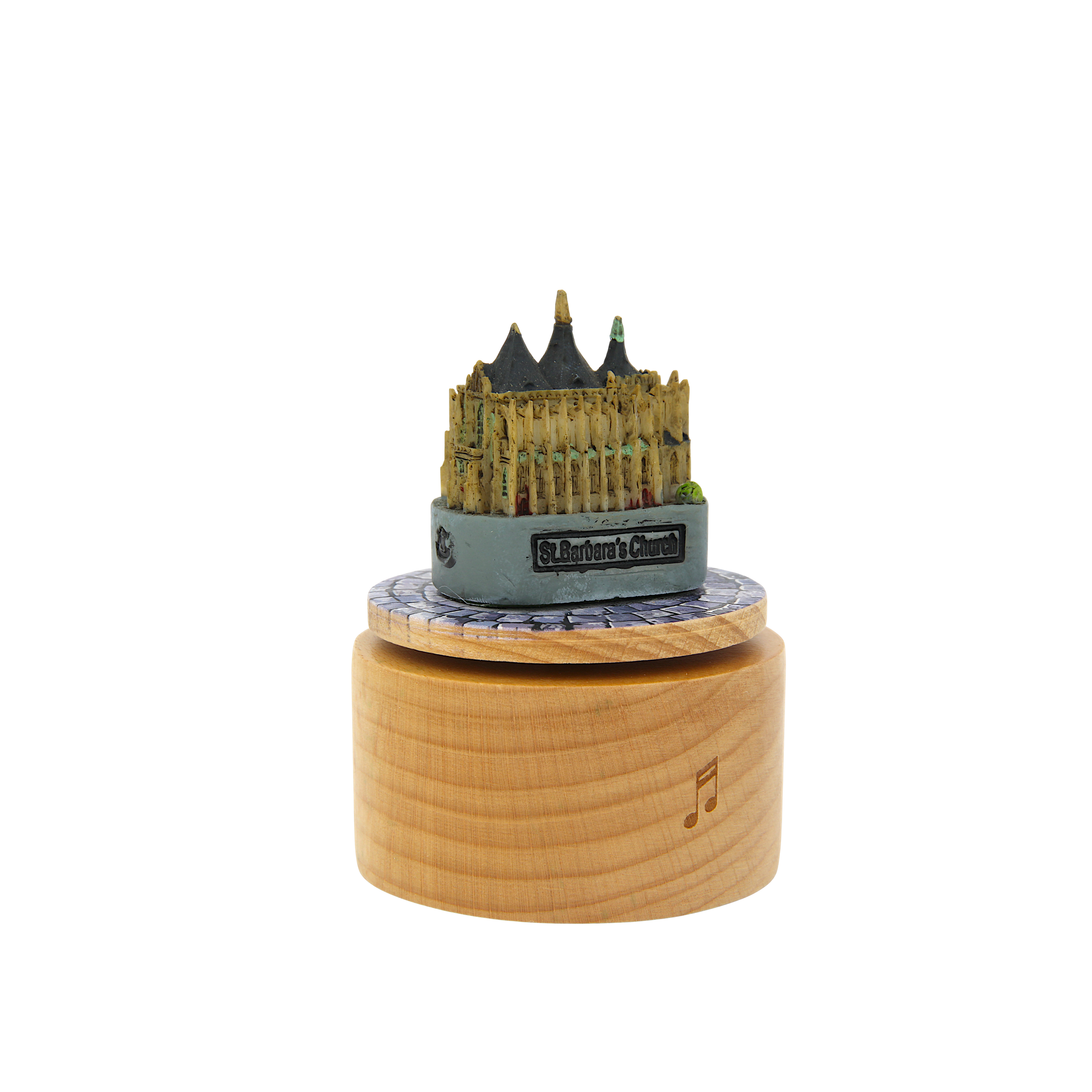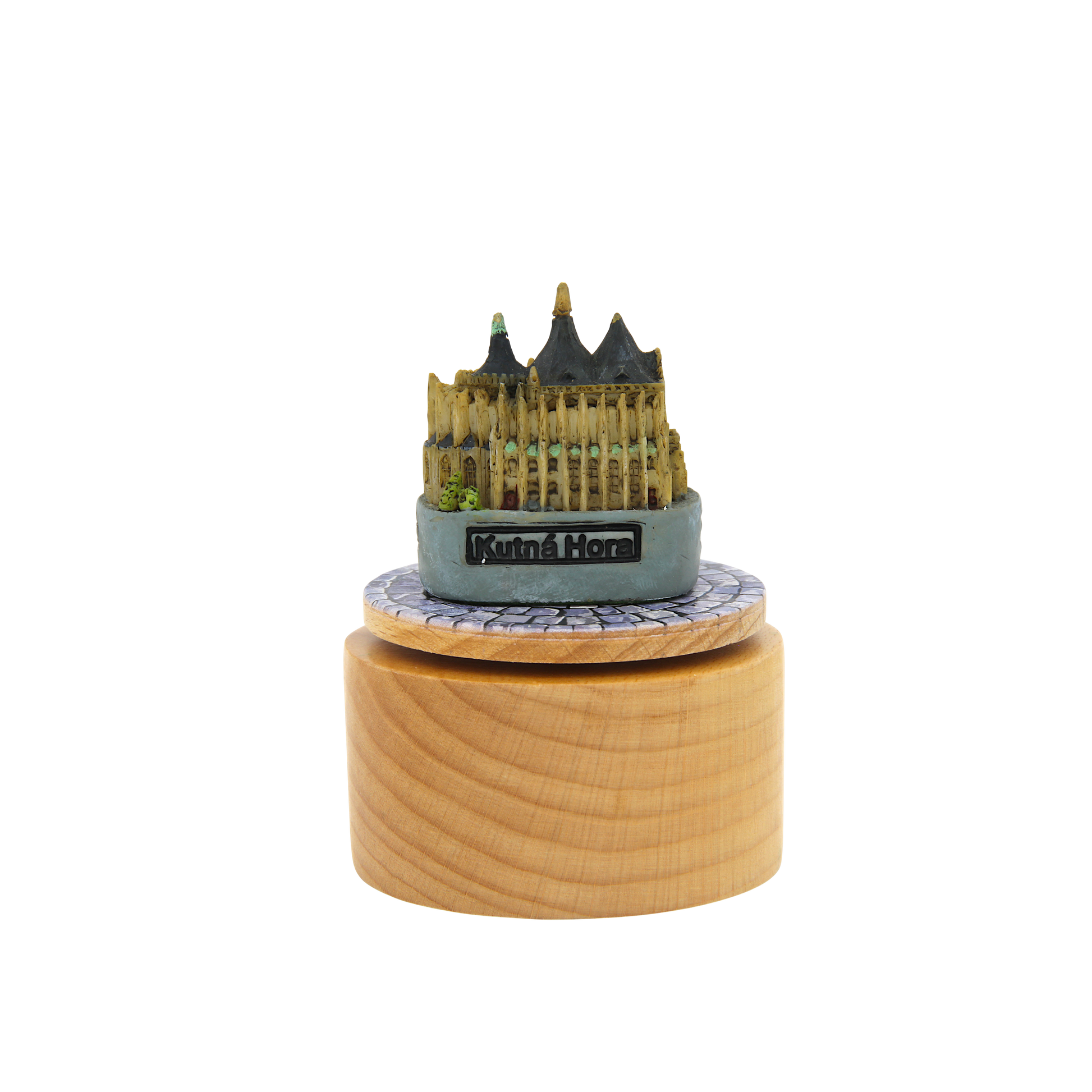 Tato krásná otočná hrací skříňka s miniaturním modelem chrámu sv. Barbory v Kutné Hoře vám představí melodii slavného českého skladatele Bedřicha Smetany s názvem Praha. Tato gotická katedrála je zapsána na seznamu světového dědictví UNESCO. Její stavba byla zahájena ve 14. století a trvala přes 500 let. Jedná se o pětilodní katedrálu, která je významným příkladem pozdně gotické architektury.
