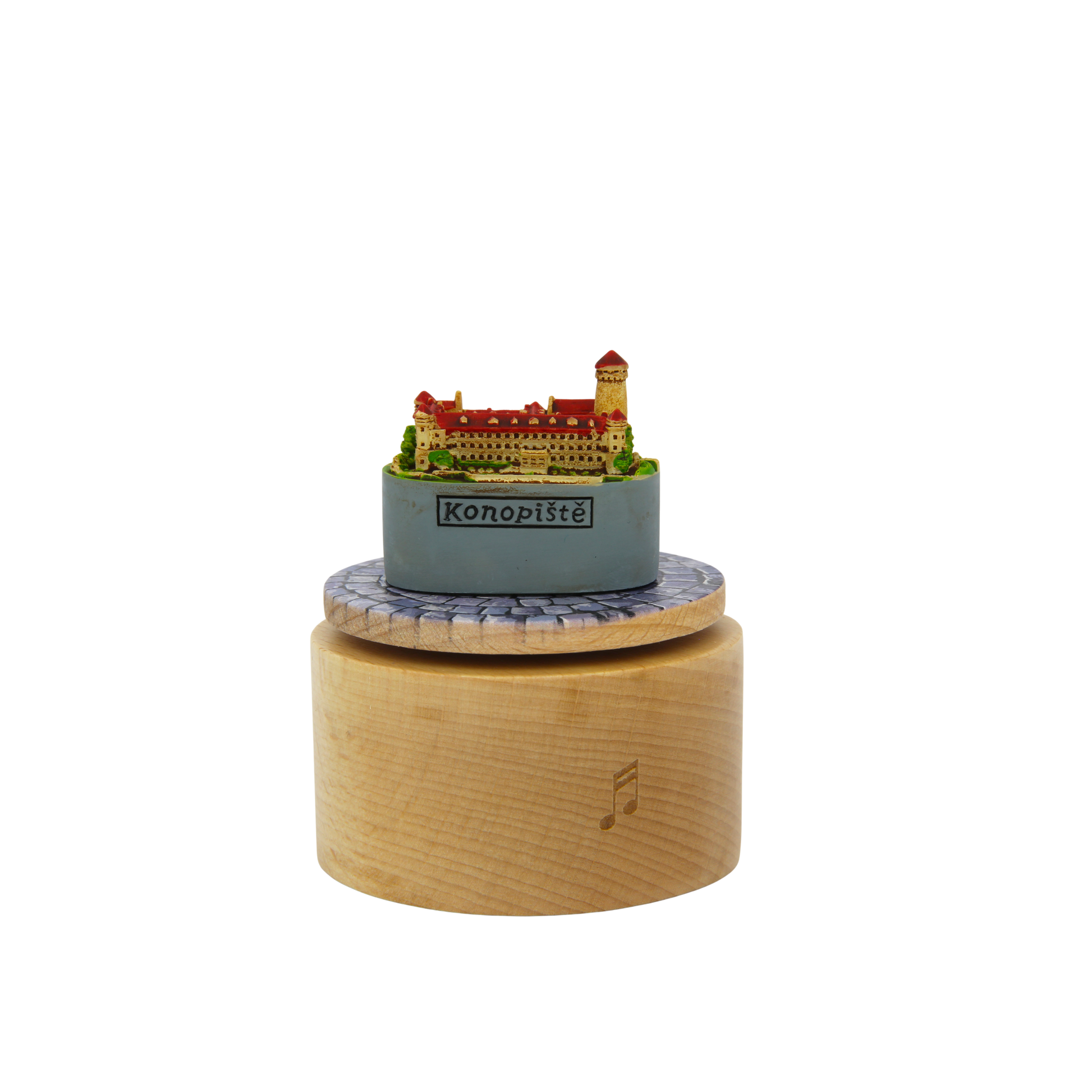 Tato velmi krásná otočná hrací skříňka s miniaturou zámku Konopiště vám představí melodii od slavného českého skladatele Bedřicha Smetany nazvanou Praha. Konopiště je romantickým zámkem s bohatou historií, který vznikl jako gotický hrad na konci 13. století a později prošel různými stavebními úpravami.