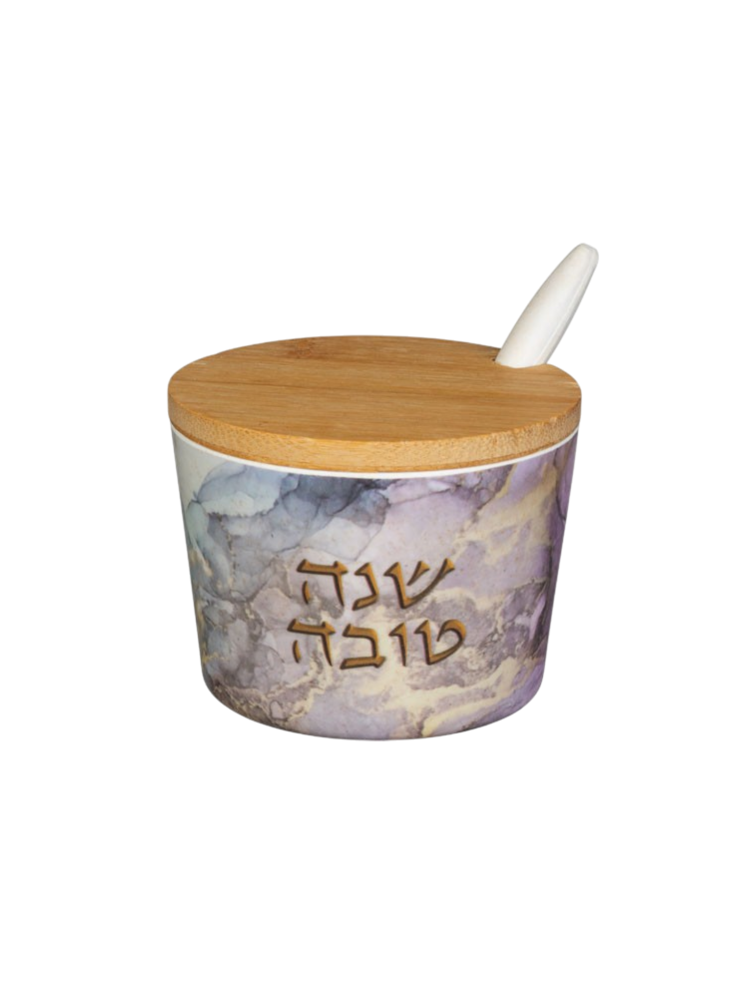 Bamboo Honey Dish "Shana Tovah" - Wine Marble