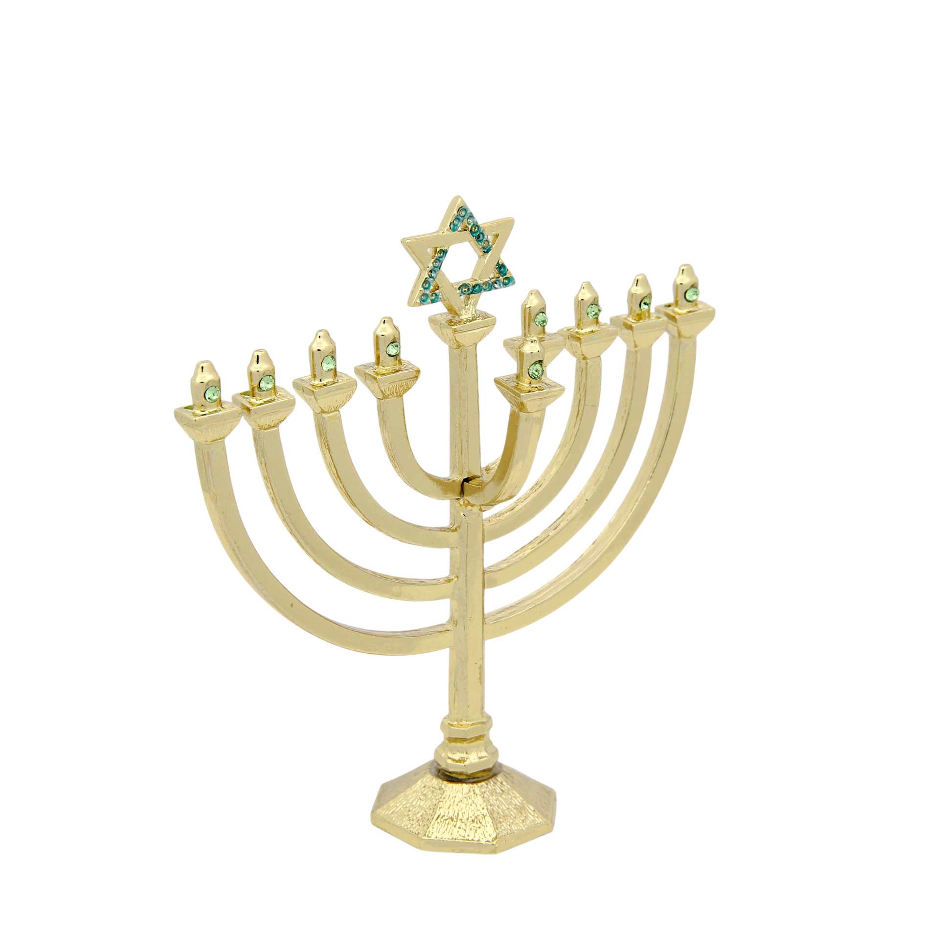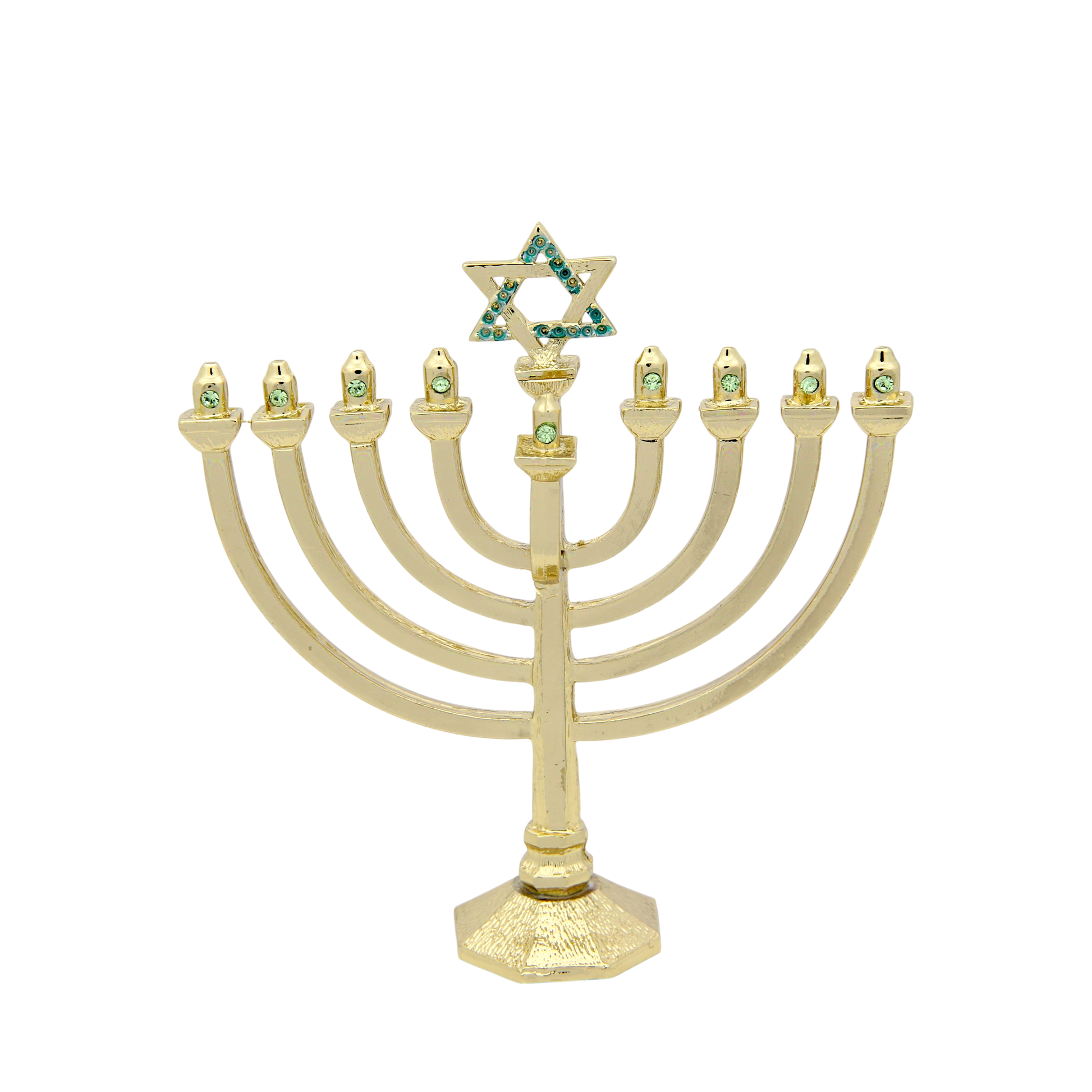 Crystal Mini-Chanukiah - Gold plated - Peridot