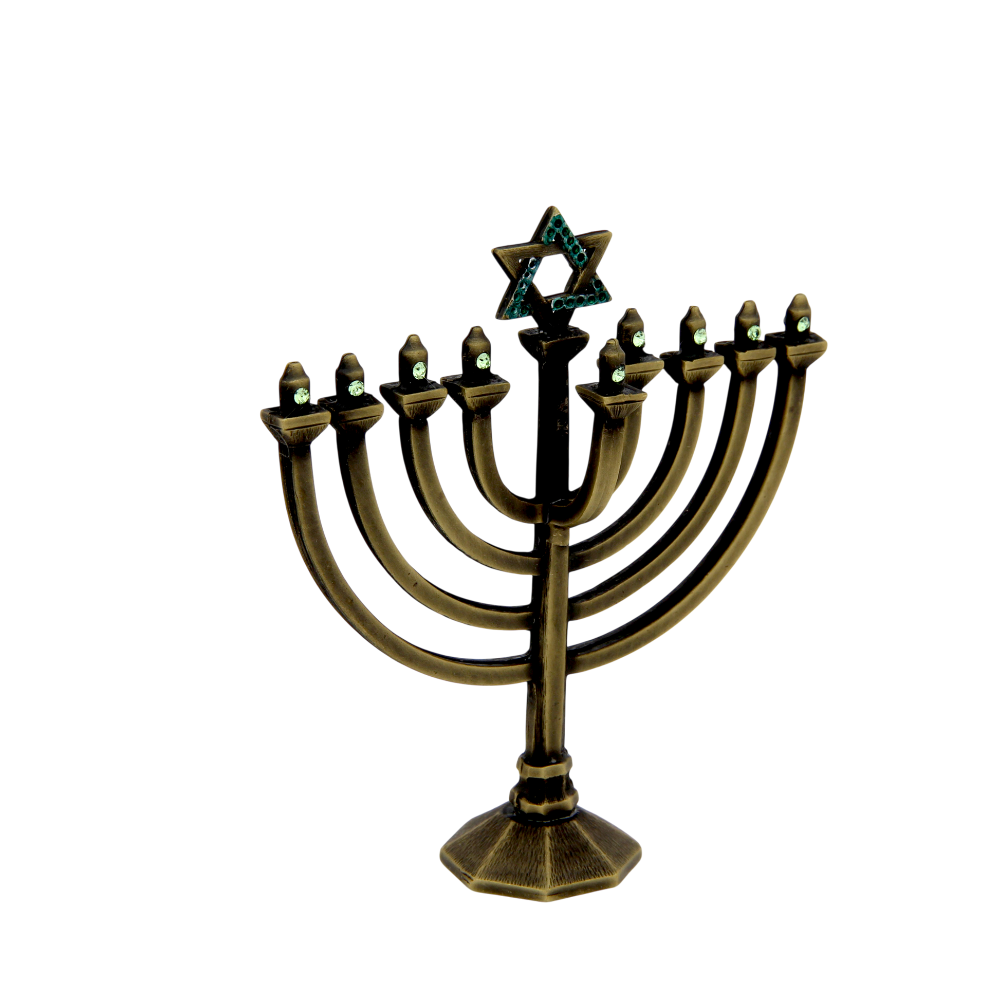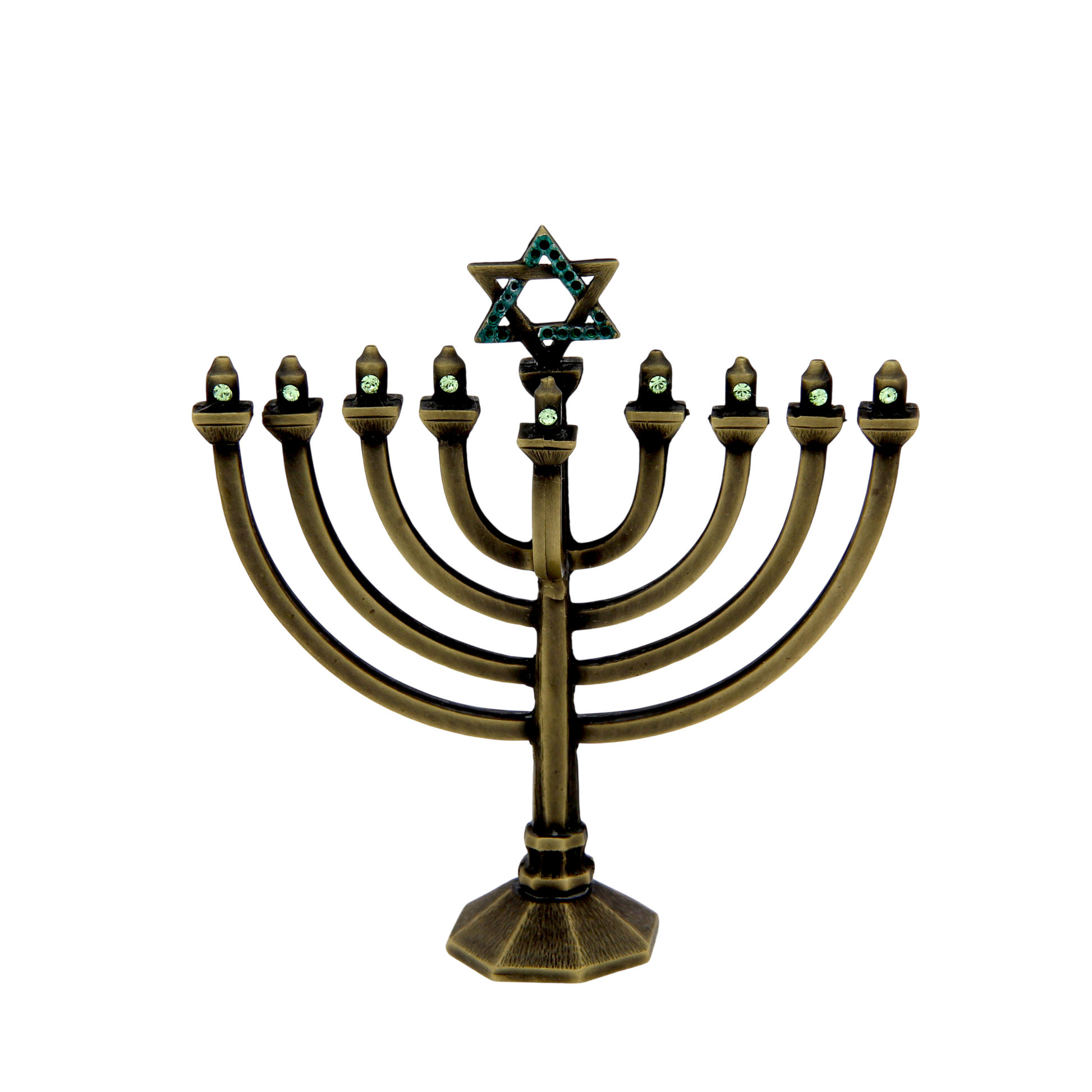 Crystal Mini-Chanukiah - Old Brass - Peridot