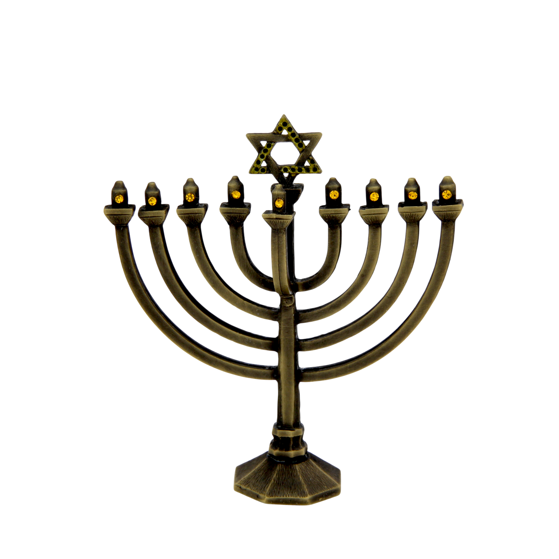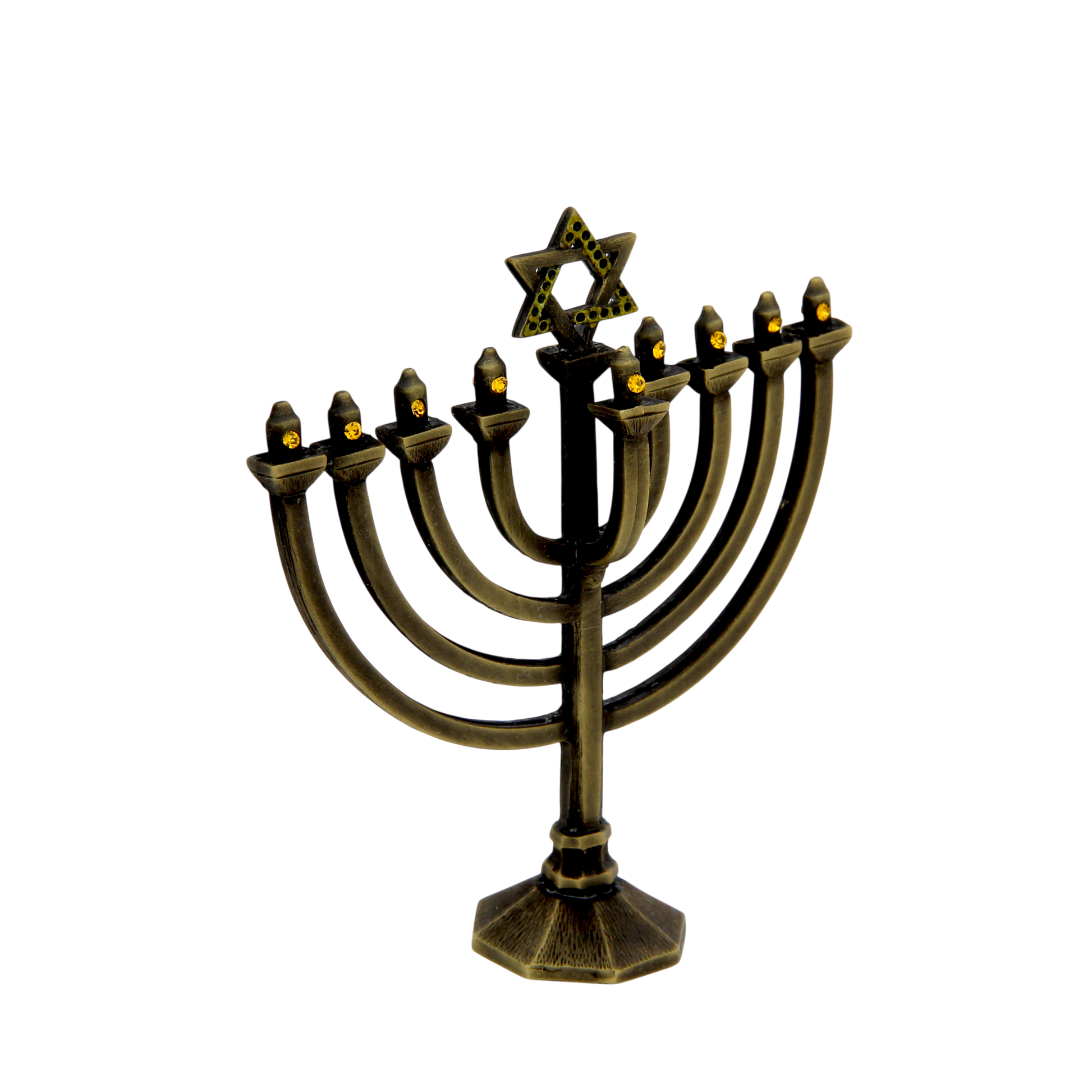 Crystal Mini-Chanukiah - Old Brass - Topaz