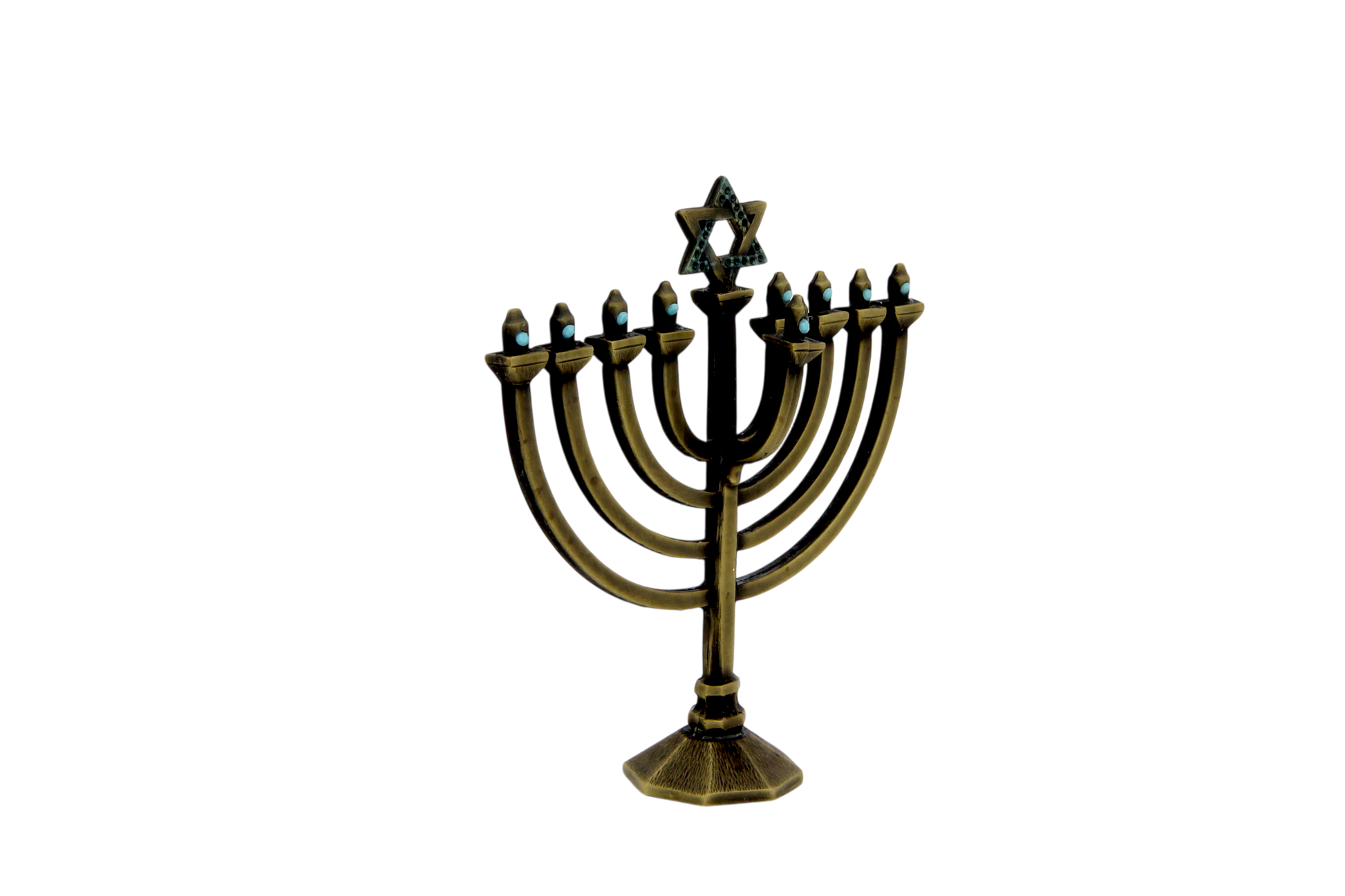 Crystal Mini-Chanukiah - Old Brass - Turquoise