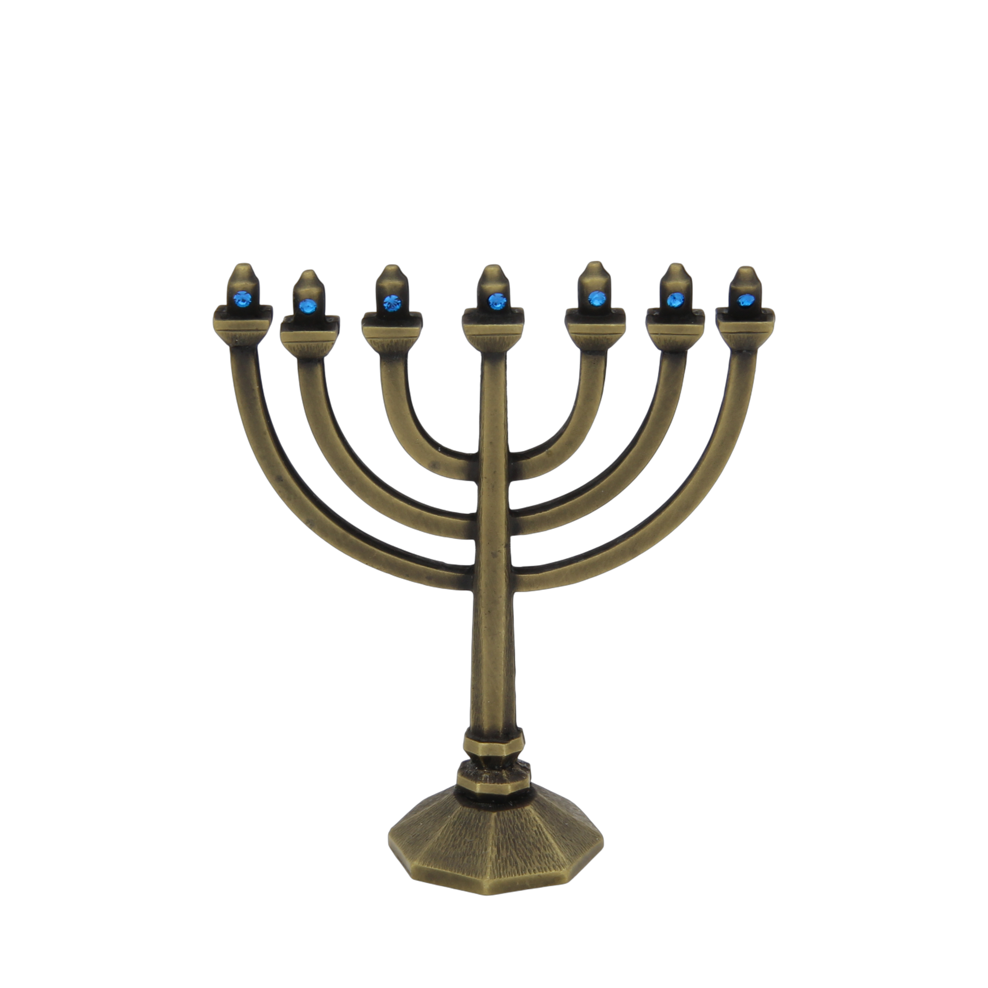 Crystal Mini-Menorah - Old Brass - Capri Blue
