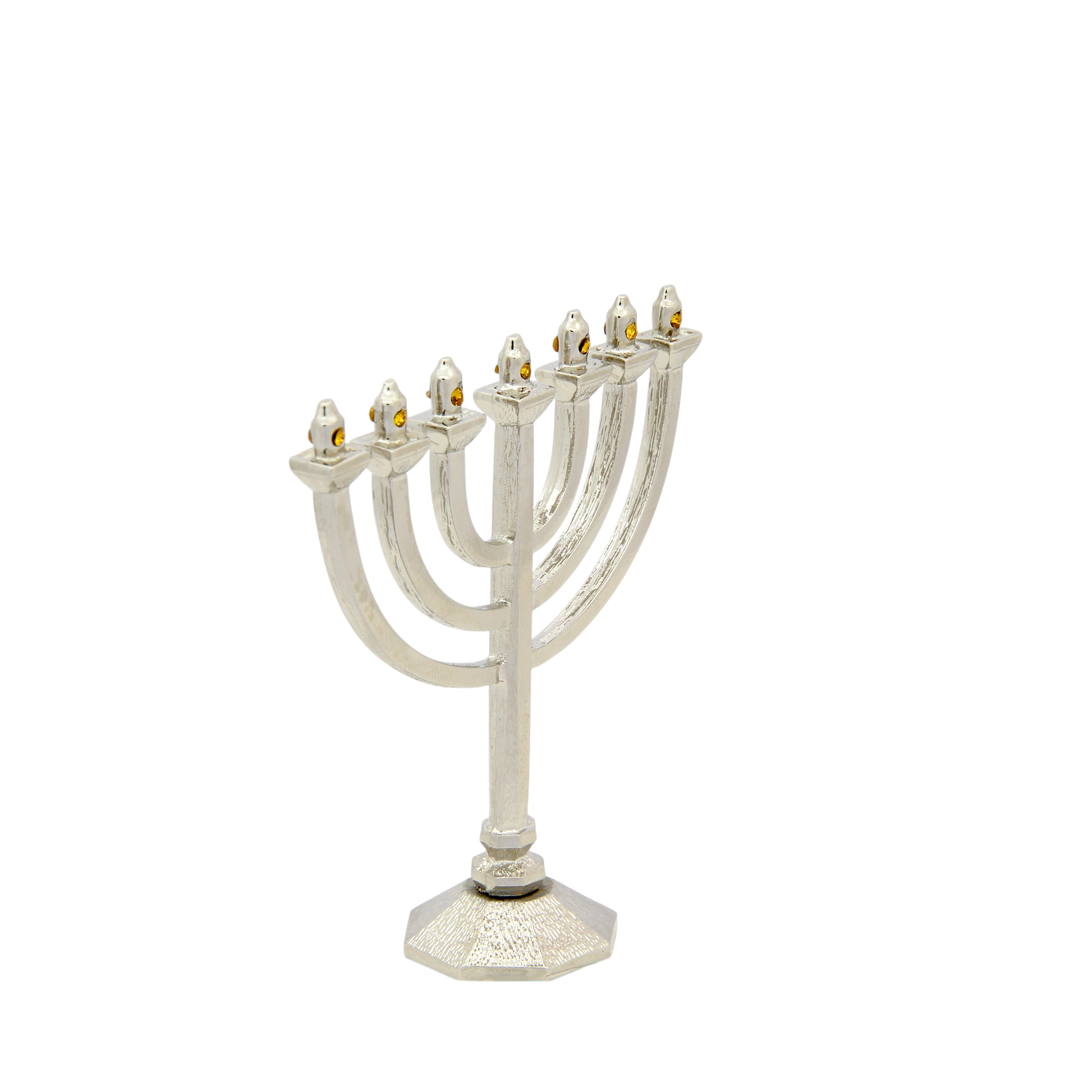 This unique standing mini menorah with small Swarovski components is an exceptional gift for your family or your friends. Unique local production. The product comes in a gift box.