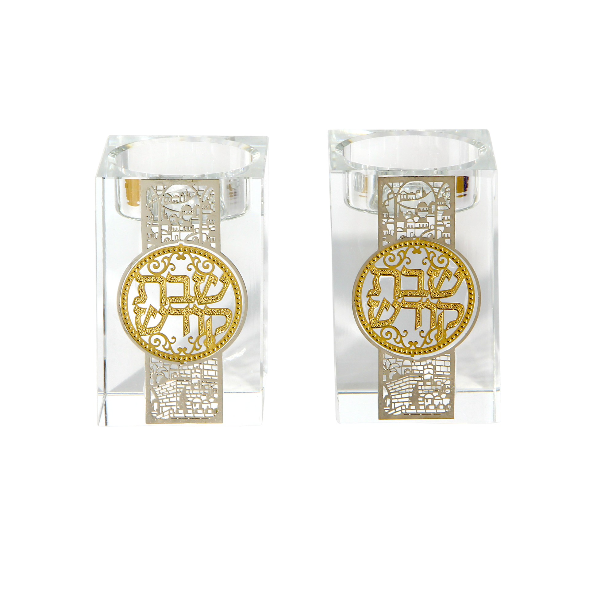 These crystal Shabbat candlesticks will enchant you with their classic design and high-quality craftsmanship, adding elegance to any Shabbat table or festive setting.