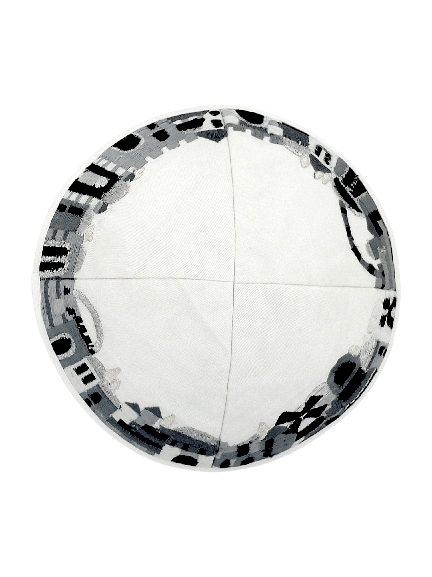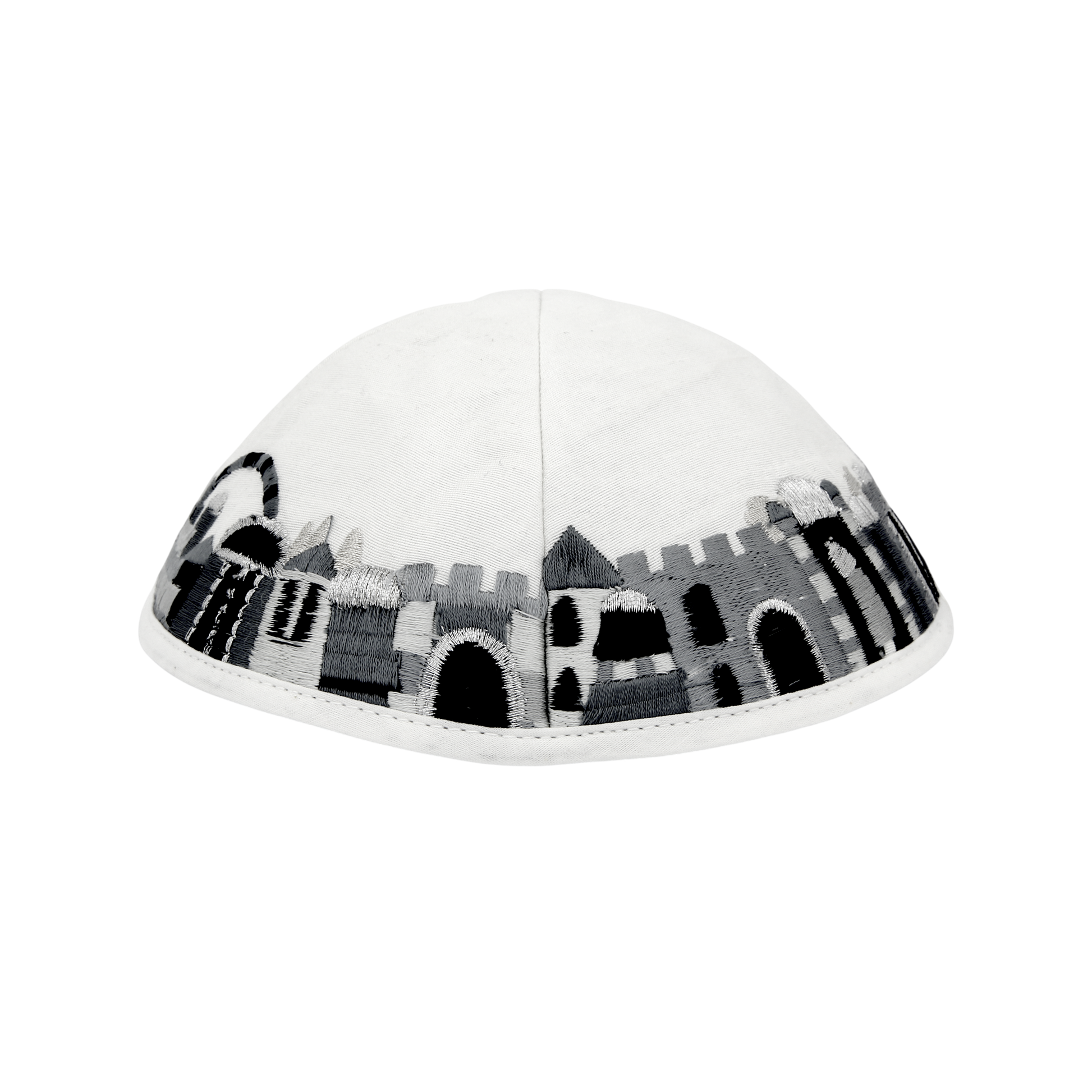 Kippah Emanuel - Embroidered - Jerusalem - Silver - Black