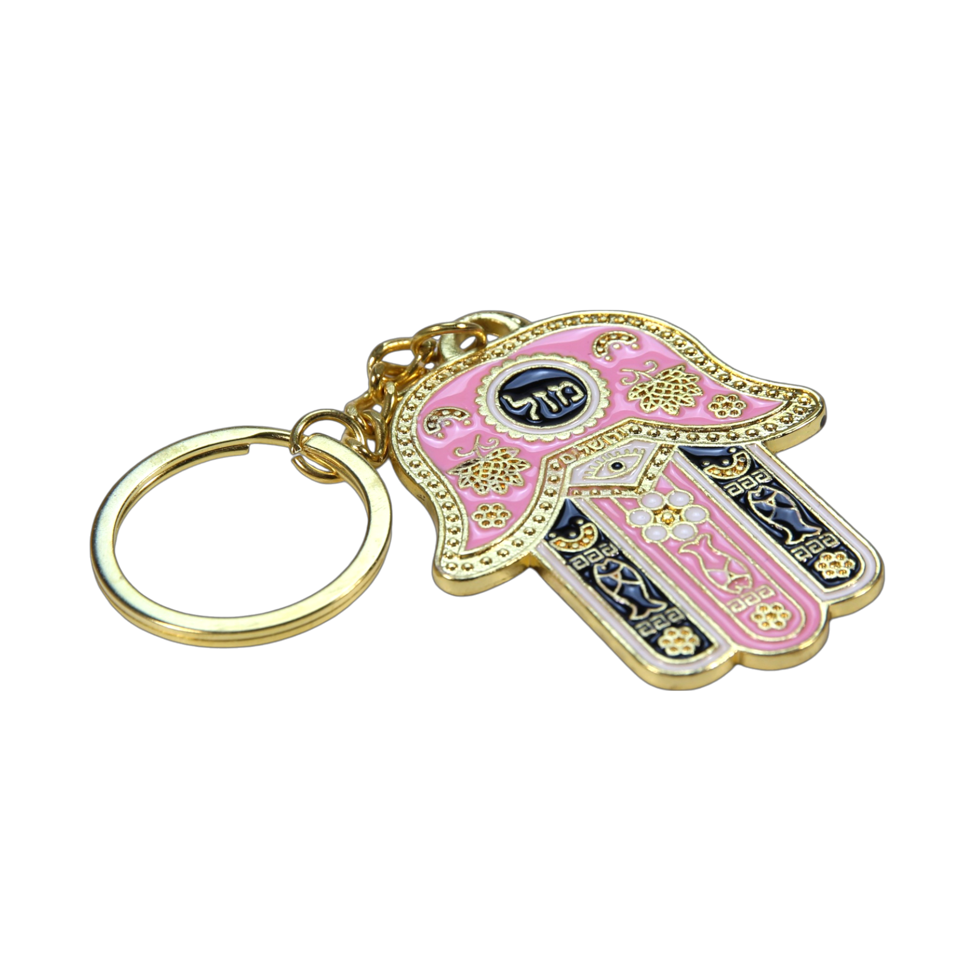 Metal Hamsa Keychain - Golden Colour - Pink Black