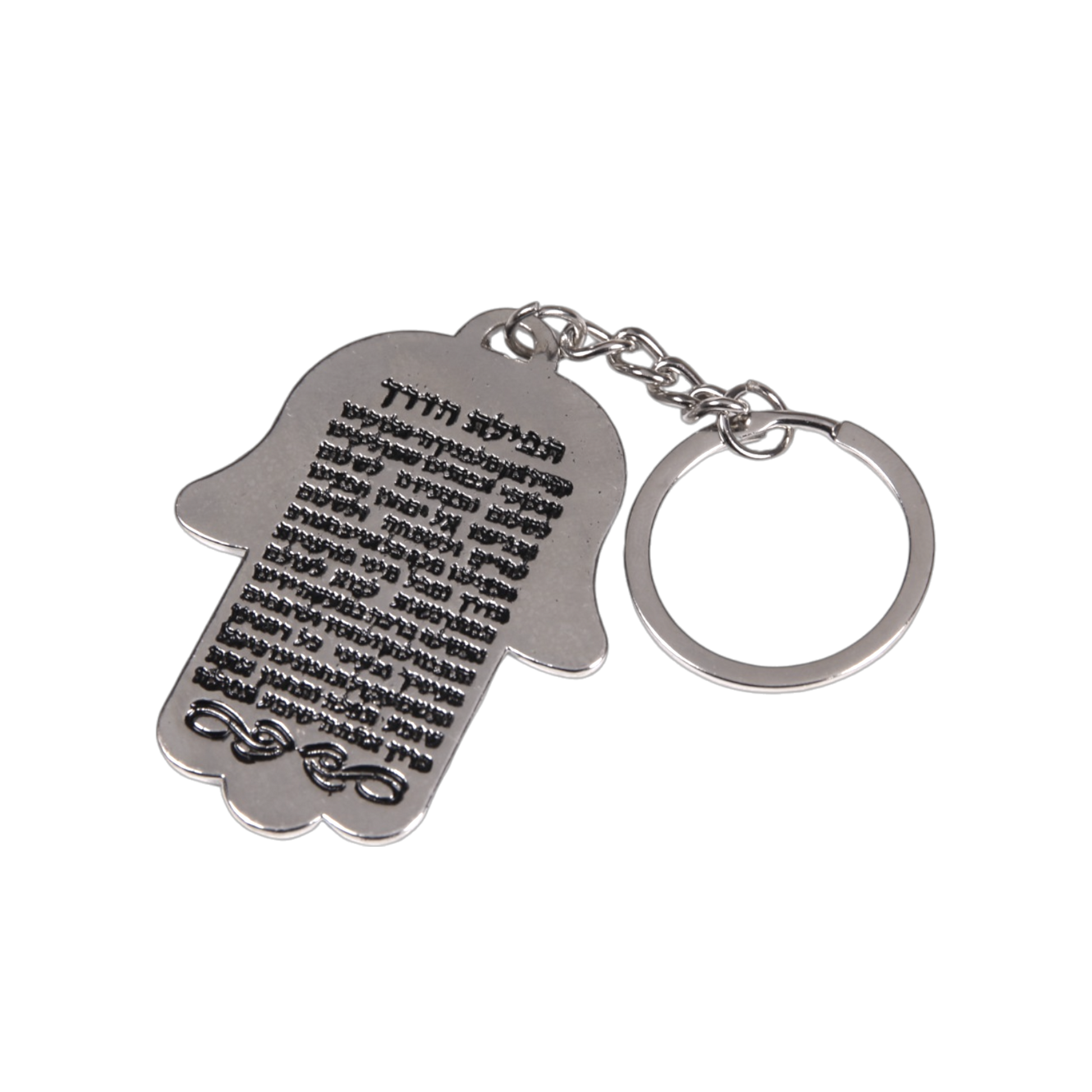 Metal Hamsa Keychain - Silver Colour - Blue Violet