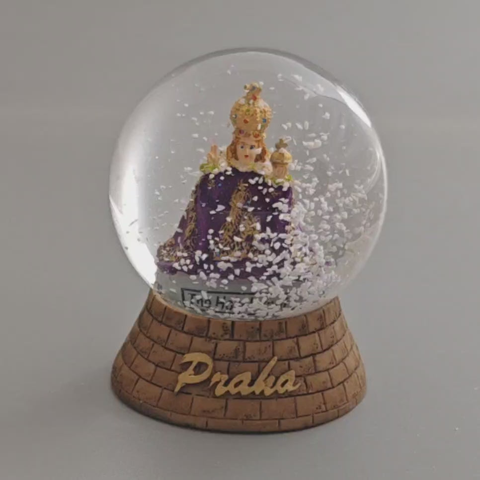 This snow globe is inspired by the model of the statue of the Infant Jesus, a 47 cm high statue made of wood with a moulded and coloured wax surface from the 16th century, located in the Church of Our Lady Victorious in Mala Strana. As these models are handmade, each piece is an original and may vary slightly in colour and weight.