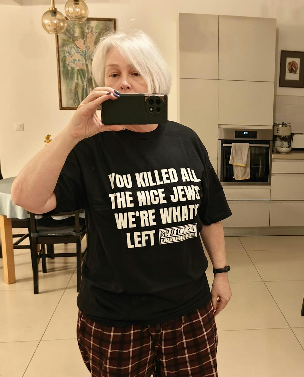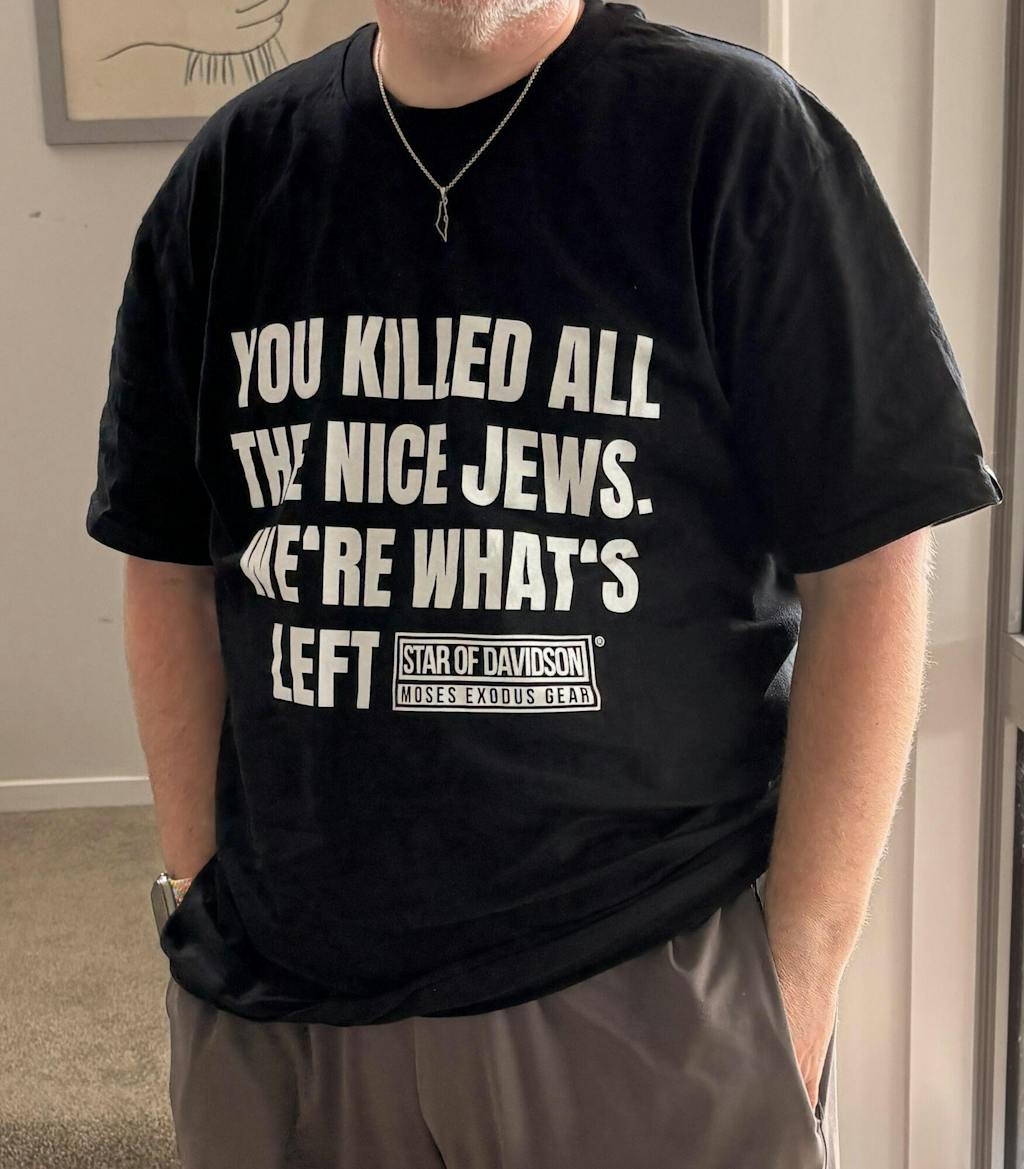 BARRY H I love this shirt - I knew I had to have it when I saw the owner of Heimishe Trdelaich wearing one in his Instagram feed. I bought two! One for me, one as a Hanukkah gift. This t-shirt signifies two wonderful qualities of Jews - pride and humor! Yes, it’s “in your face” humor - but at moments such as this in the world, we Jews must be proud out loud. This isn’t just a T-shirt, it’s an affirmation!