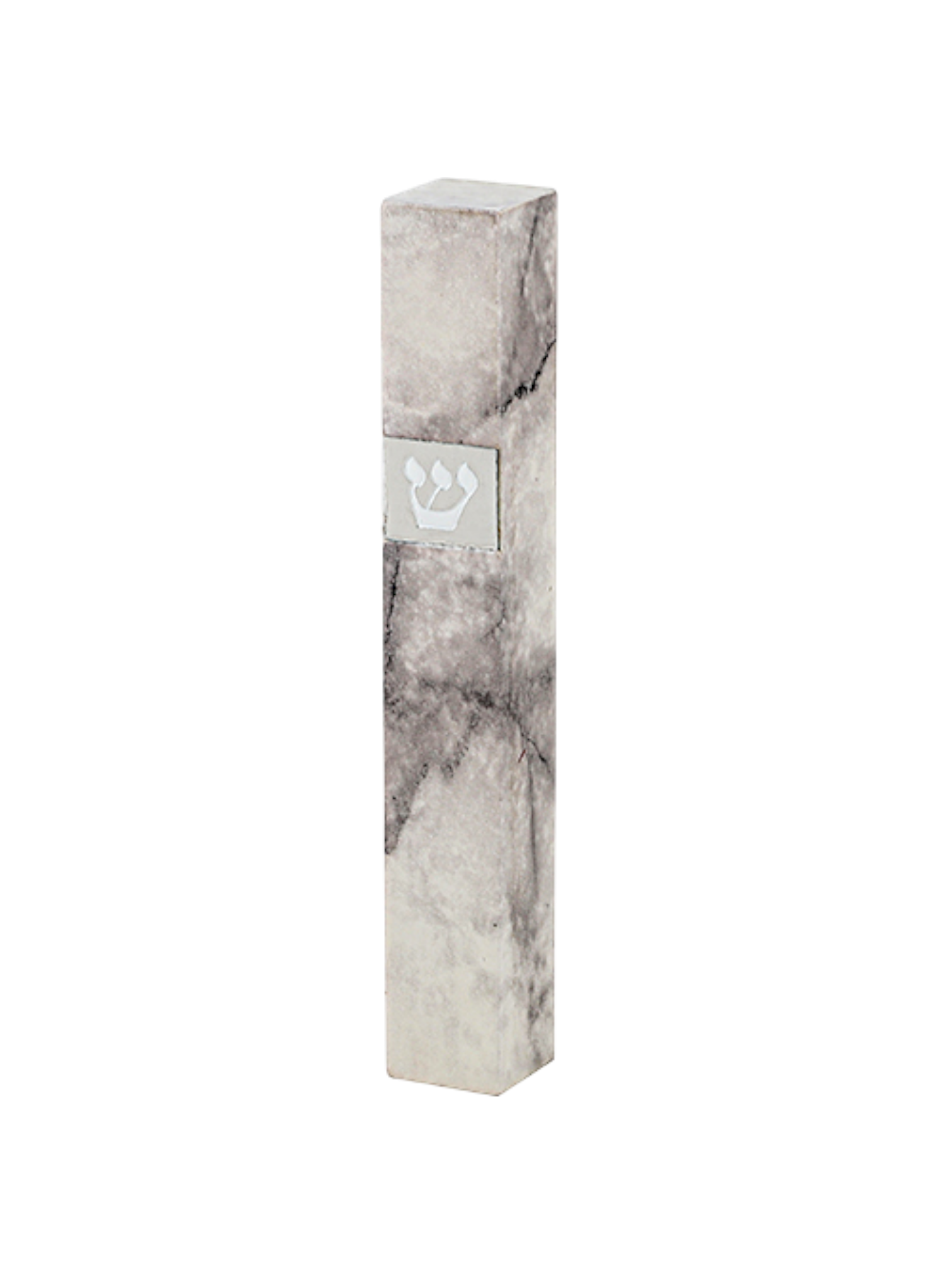 Wooden mezuzah in grey marble with a metal plaque. Mezuzah without scroll. Scroll can be purchased separately. Mezuzah may vary slightly in colour.