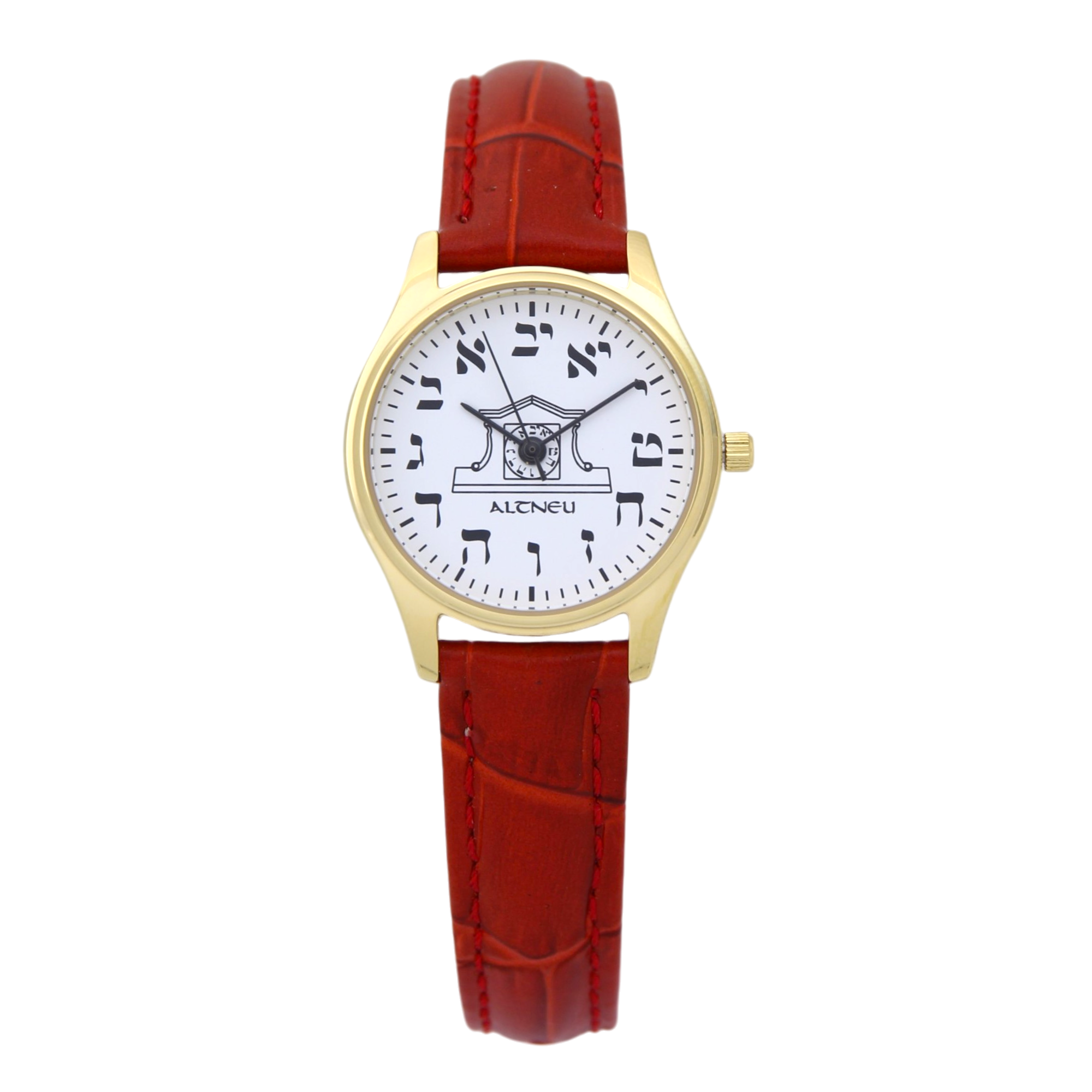 Mens Altneu Hebrew backwards watch - Dark Brown Leather